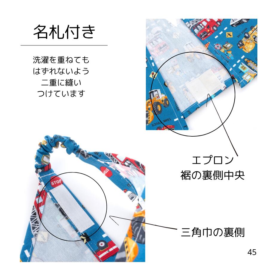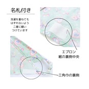 名札位置:エプロン 裾の裏側中央/三角巾 裏側の右側