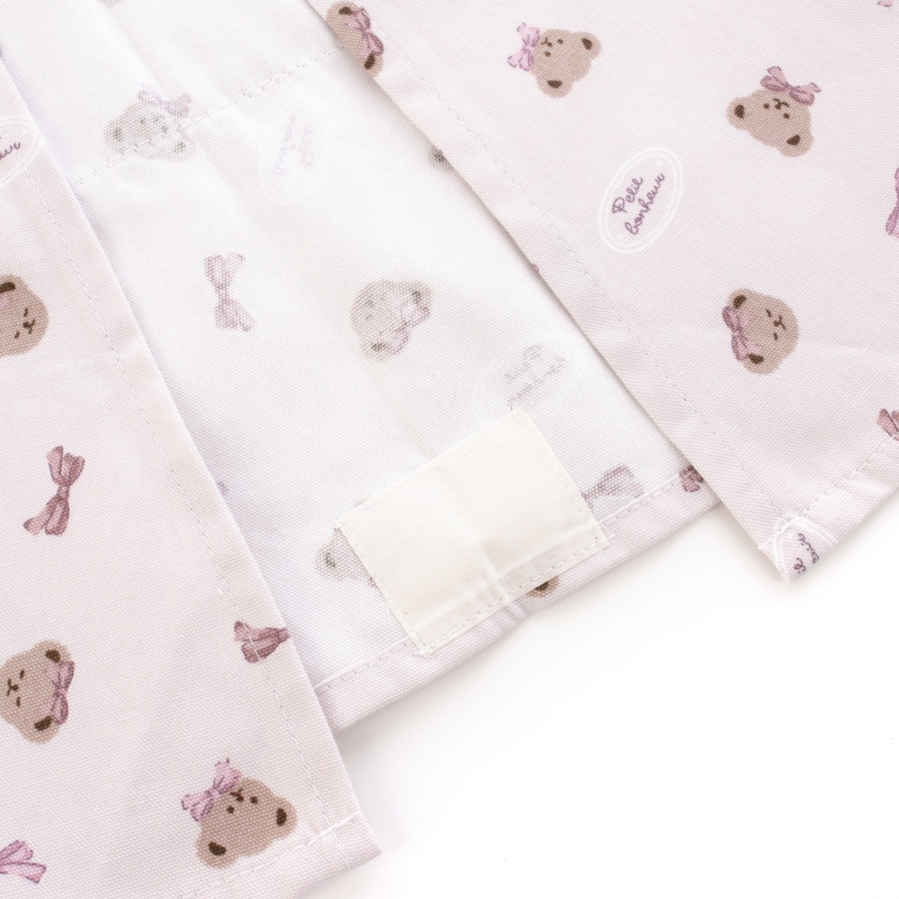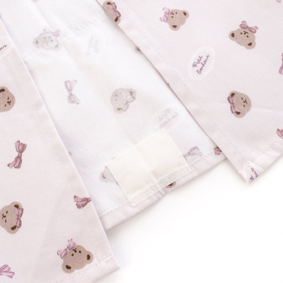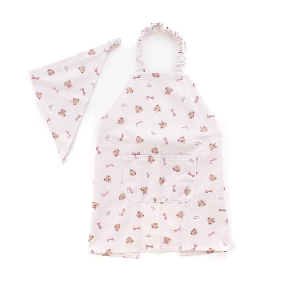 エプロンの首元と後ろの腰部分、三角巾の後ろもゴムベルトになっていますので、お子さん一人で身じたくできます。